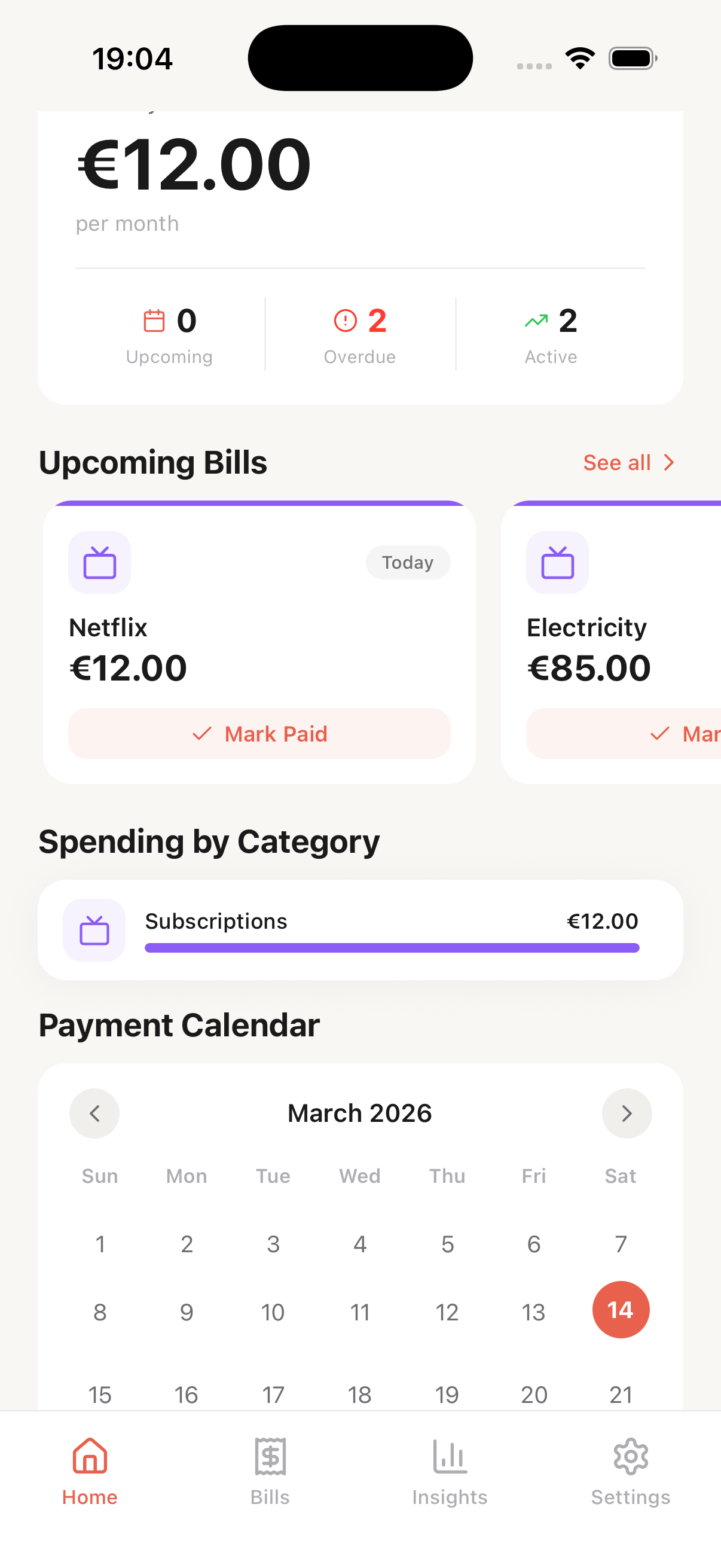 Bills and subscriptions management app concept. Helps users track and manage their expenses efficiently.